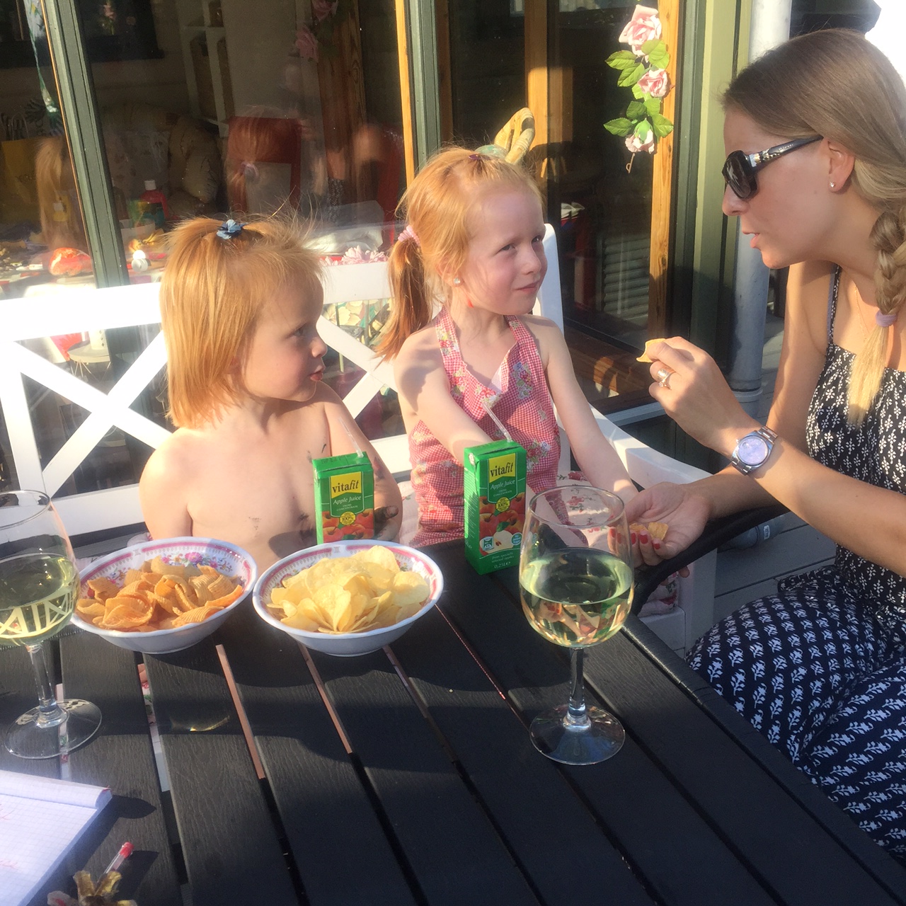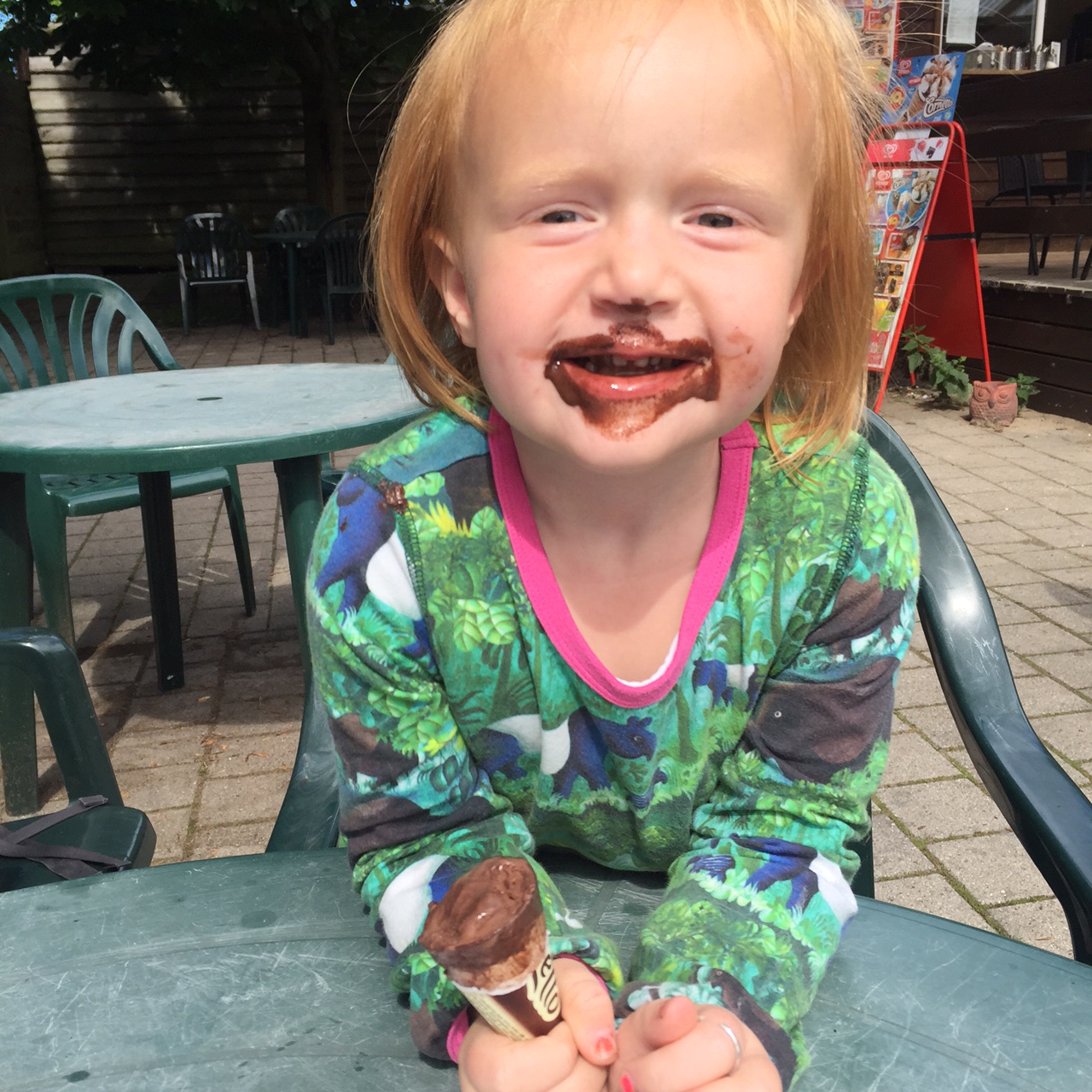 Og jeg er egentlig også meget betaget af dem, lige indtil de vil have fat i min cappuccino og drømmekage. Farmor er ikke til megen hjælp – hun vælger at grine og fotografere mig i stedet for at komme til undsætning!