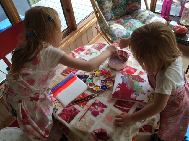 Cille og Mille maler igen-igen. På sten, lærred og fingre.