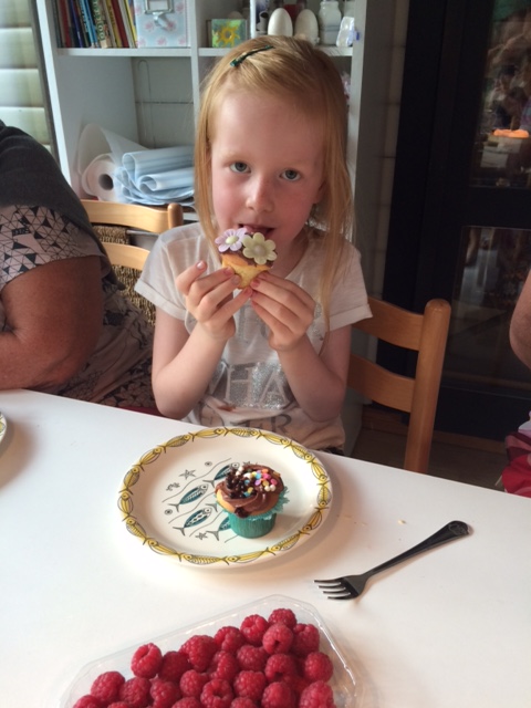 Og selvom sukker-kvalmegrænsen egentlig er nået forlængst, så insisterer Cille på at bage og dekorere candy cupcakes, som hun lige har fået i fødselsdagsgave af Tante A.