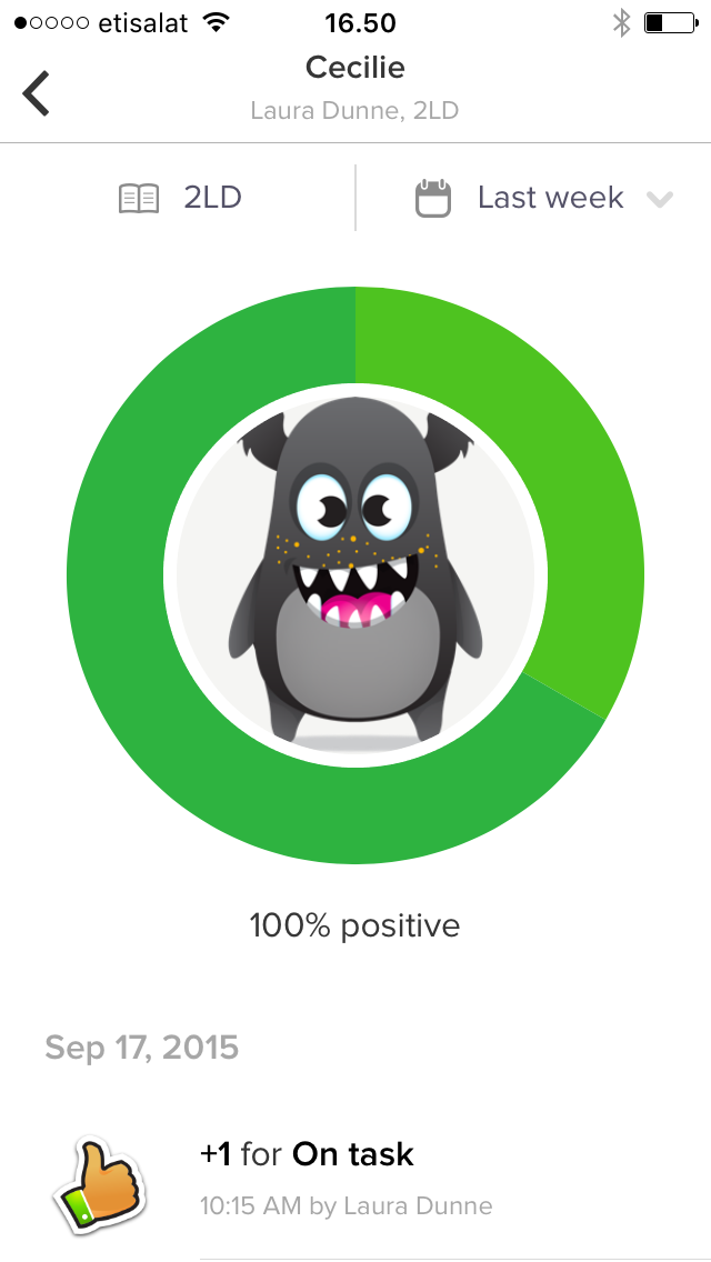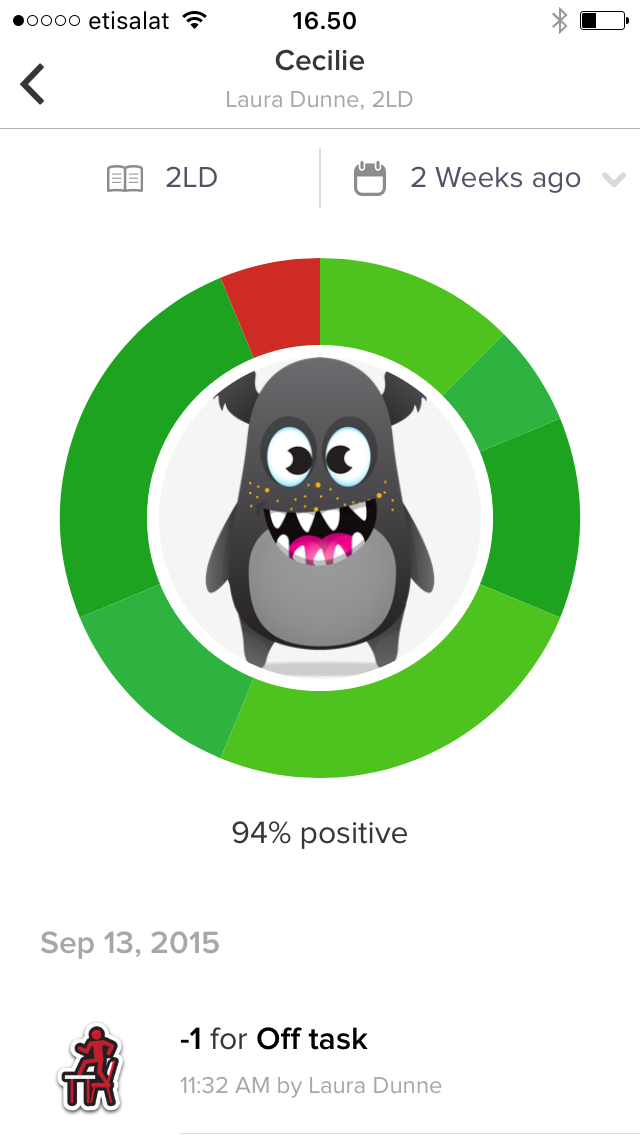 Men ugen forinden smutter det åbenbart lidt for Den Lille-Store Skolepige, der får en minus-dojo for “off-task”.
