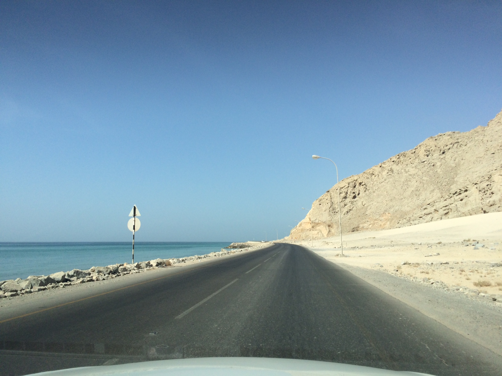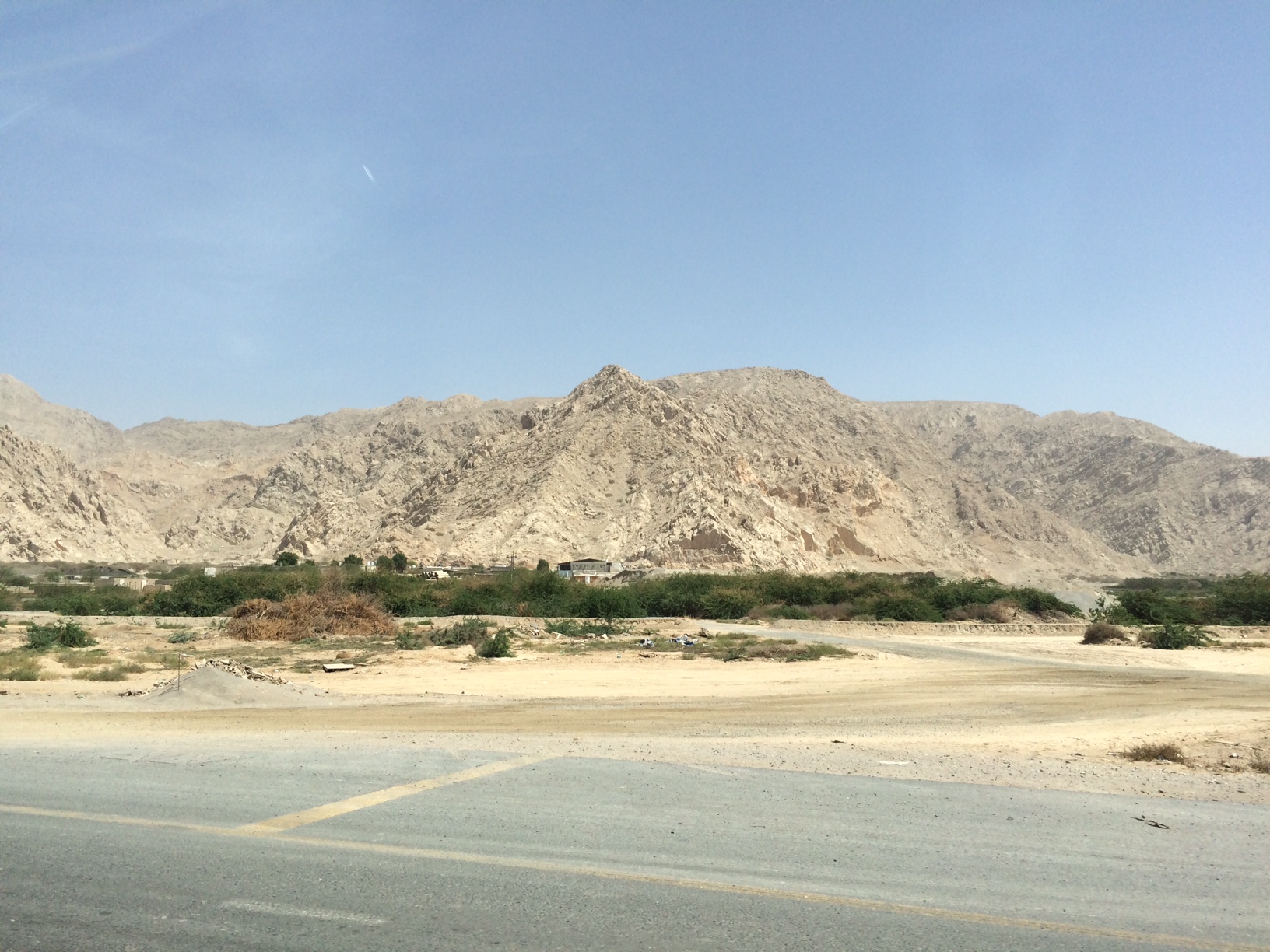 Vi kører stik nordpå igennem emiraterne Sharjah, Ajman, Umm Al Quwain og Ras Al Khaimah til vi rammer grænsen mellem De Forenede Arabiske Emirater og den lille Omani-enklave Musandam.