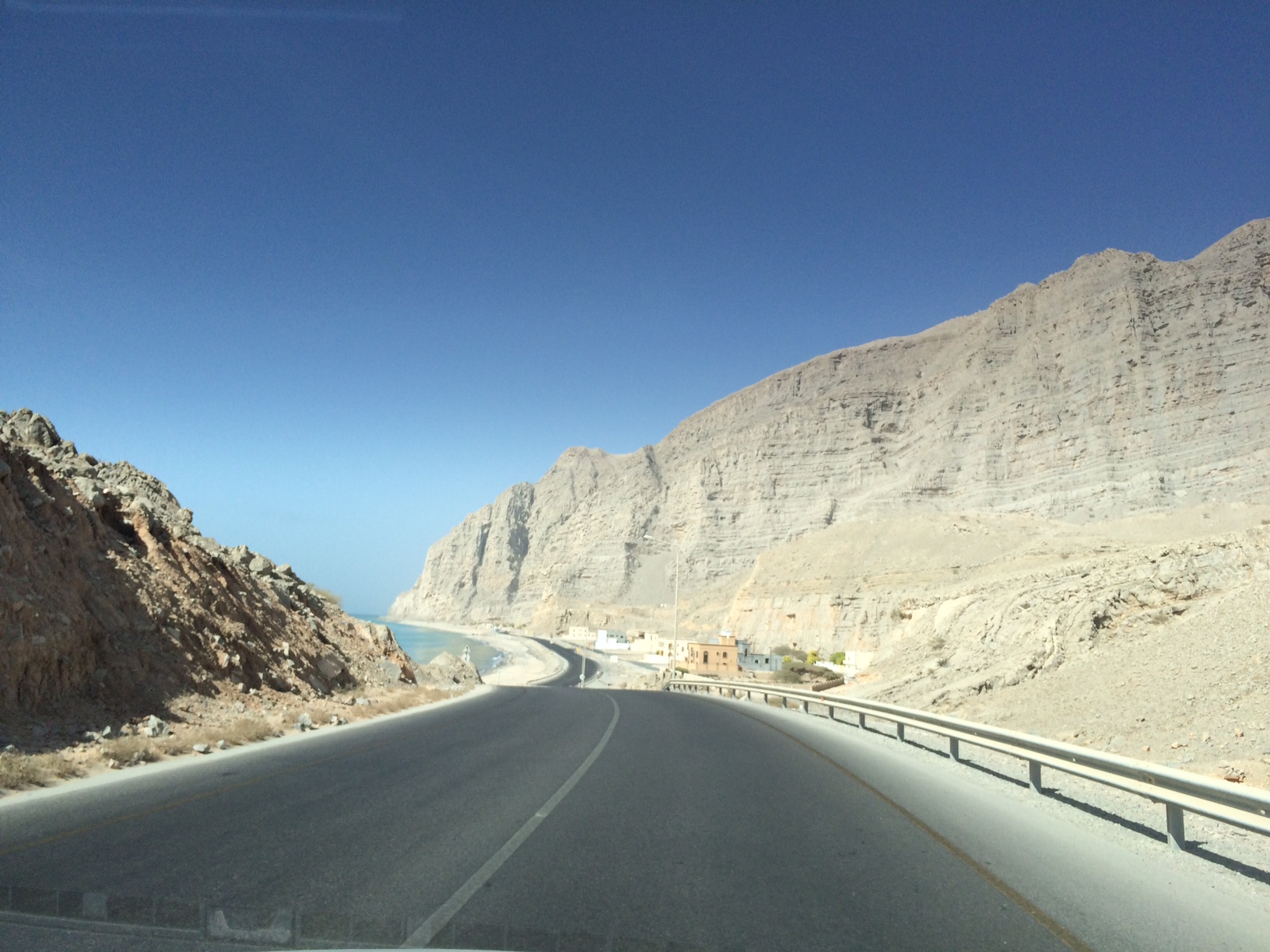 Oman (Musandam) er dramatisk, goldt bjerglandskab. Der er geder, som græsser koncentreret langs vejkanten. Og støvede, fattige landsbyer og små fiskerlejer langs kysten.