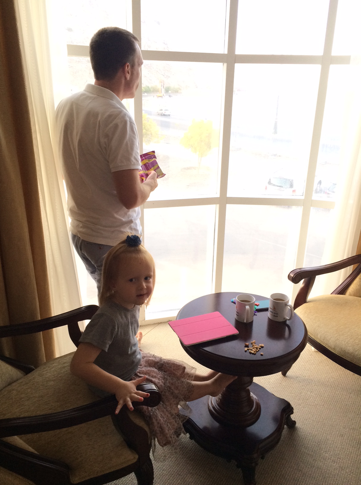 Hotellet ligger ene og alene. Som et fejlslagent forsøg på noget moderne-glas-halløj midt i støvet ingenmandsland – og vi kommer til at grine lidt i vores executive suite, der er så langt fra executive, som det er muligt.