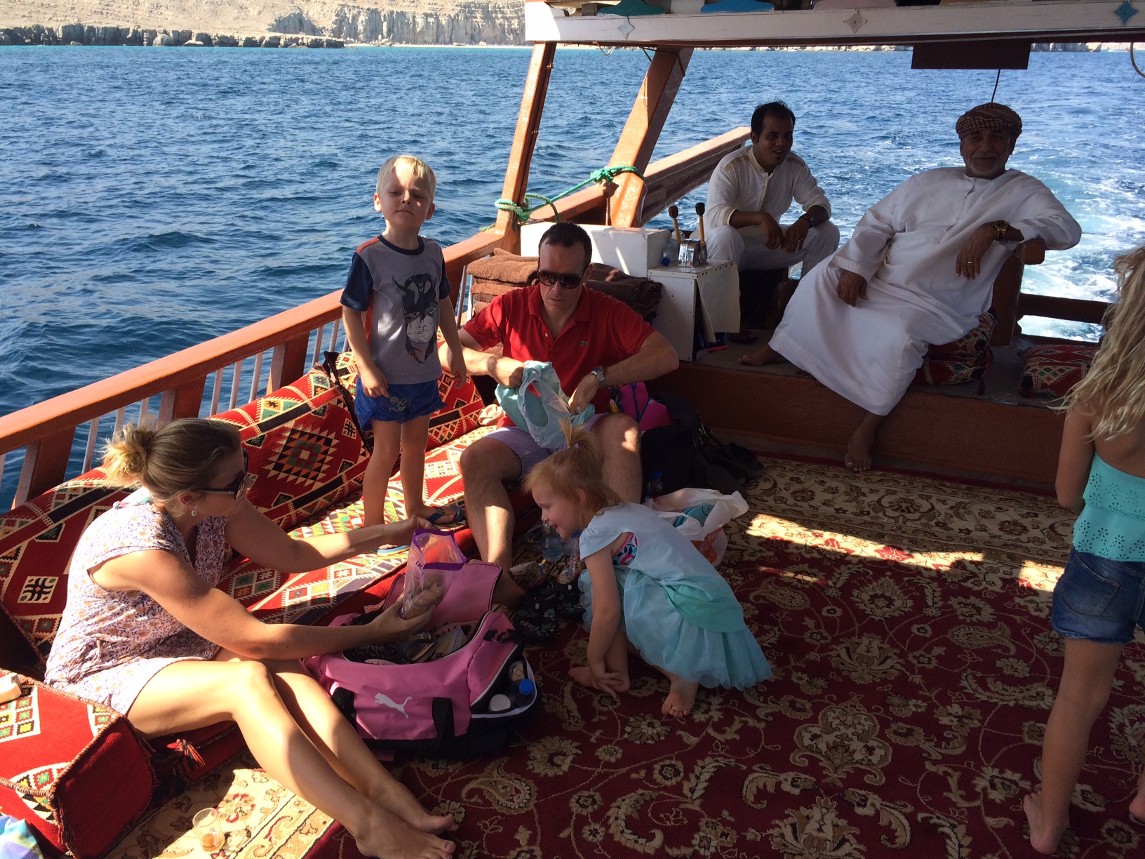 Vi er 7 danske familier, som har lejet en dhow for en dag.
