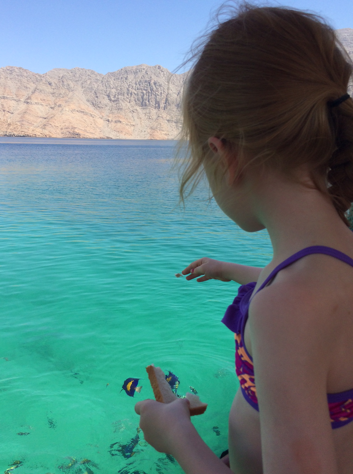 Der er så uendeligt smuk her i Arabiens svar på de norske fjorde. Ikke at jeg har et sammenligningsgrundlag, idet jeg har Norgesruten til gode, men det her slår benene væk under mig.