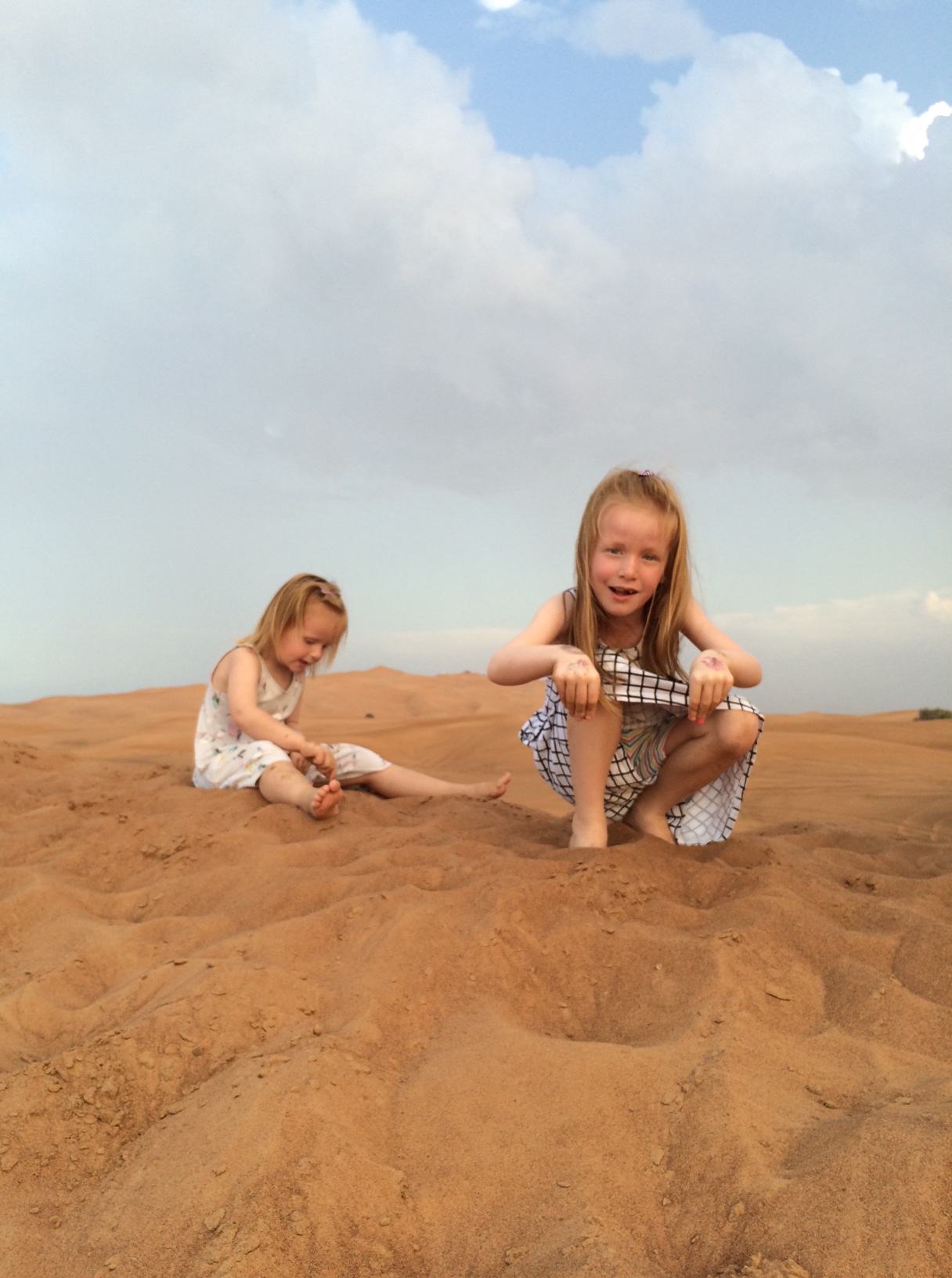 Pigerne er straks igang med sandleg.