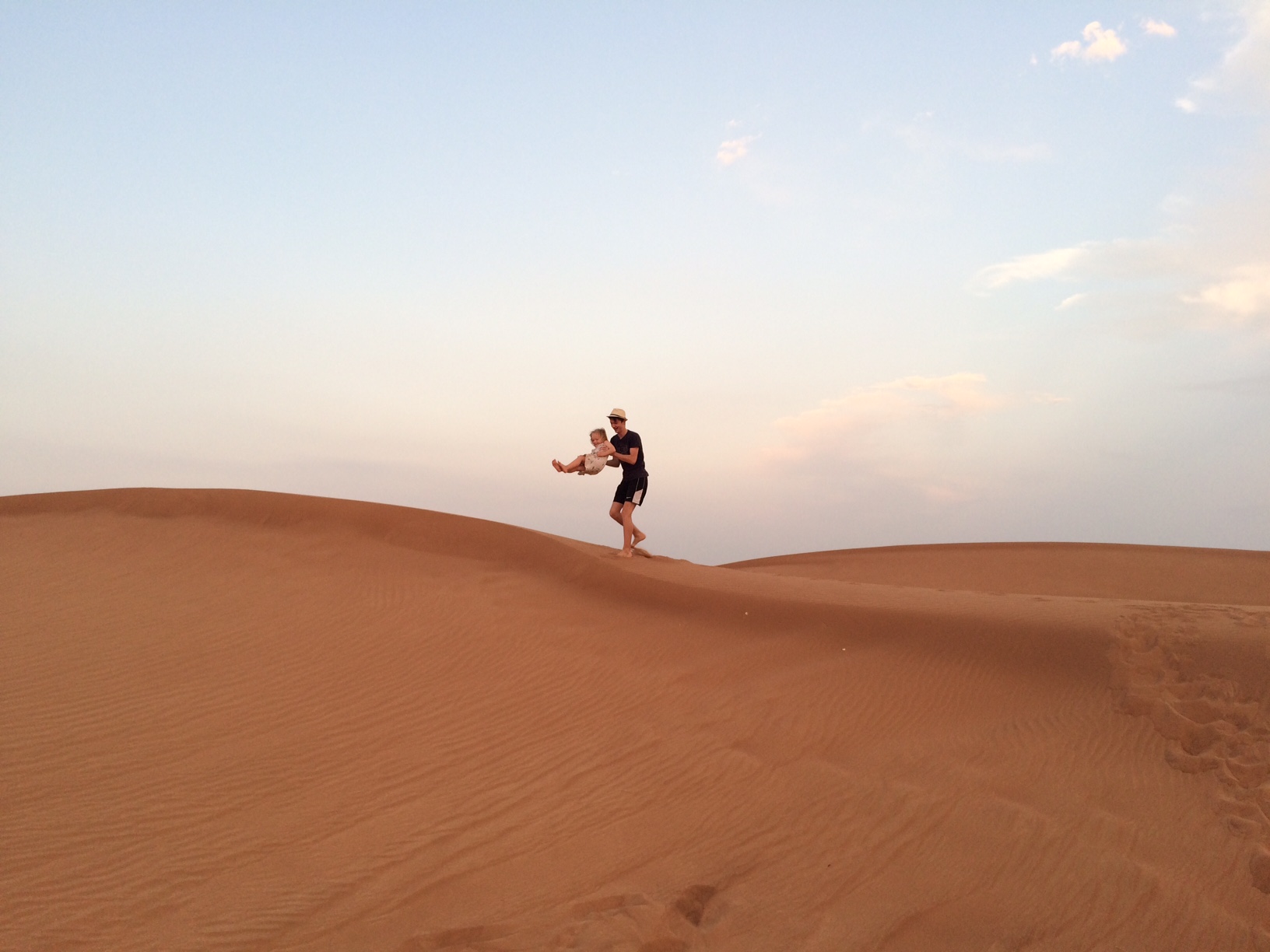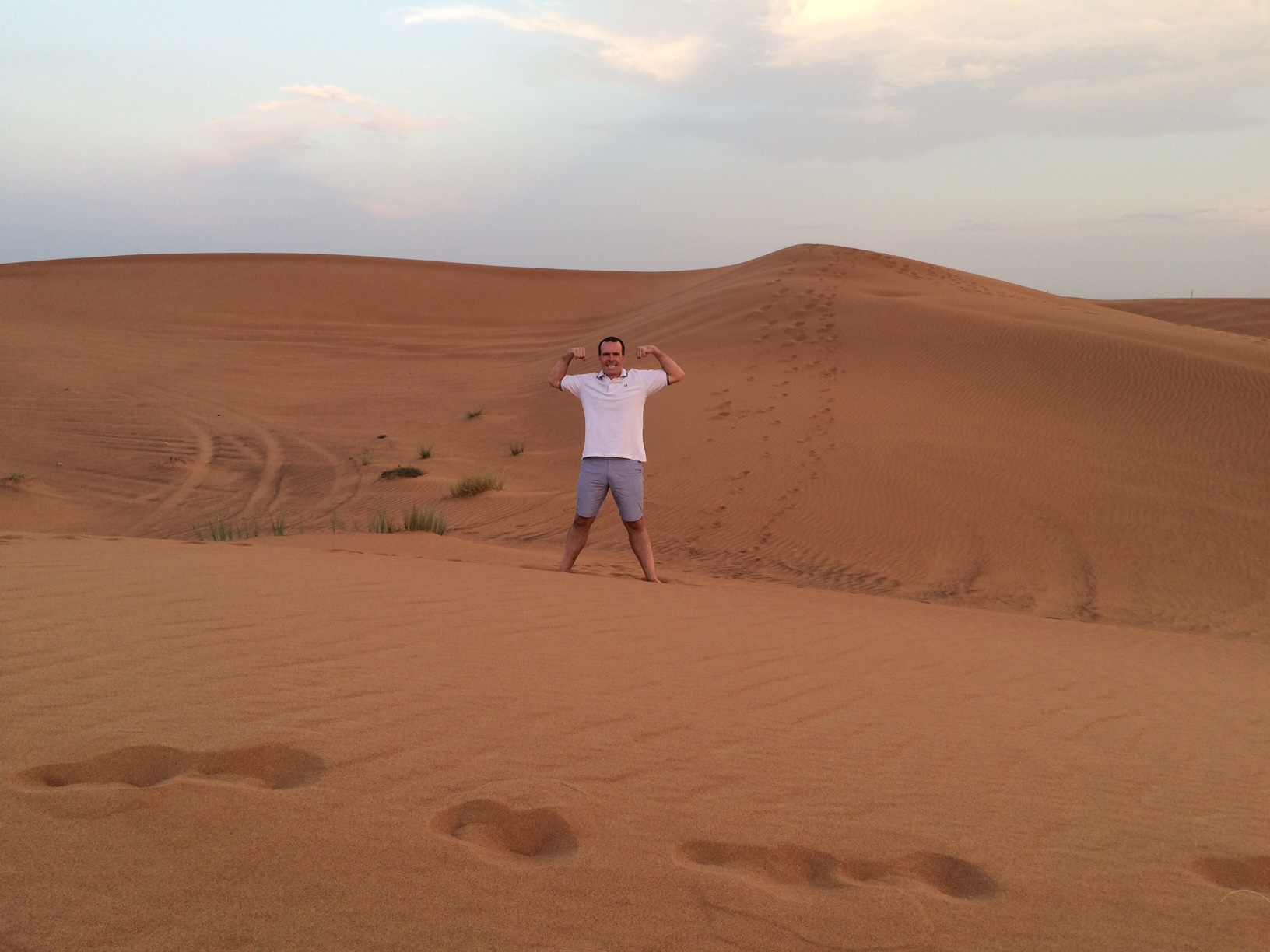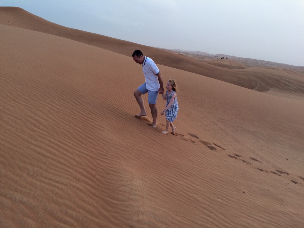 Khaleed – vores ørkenturguide – bemærker det straks og ler højt.