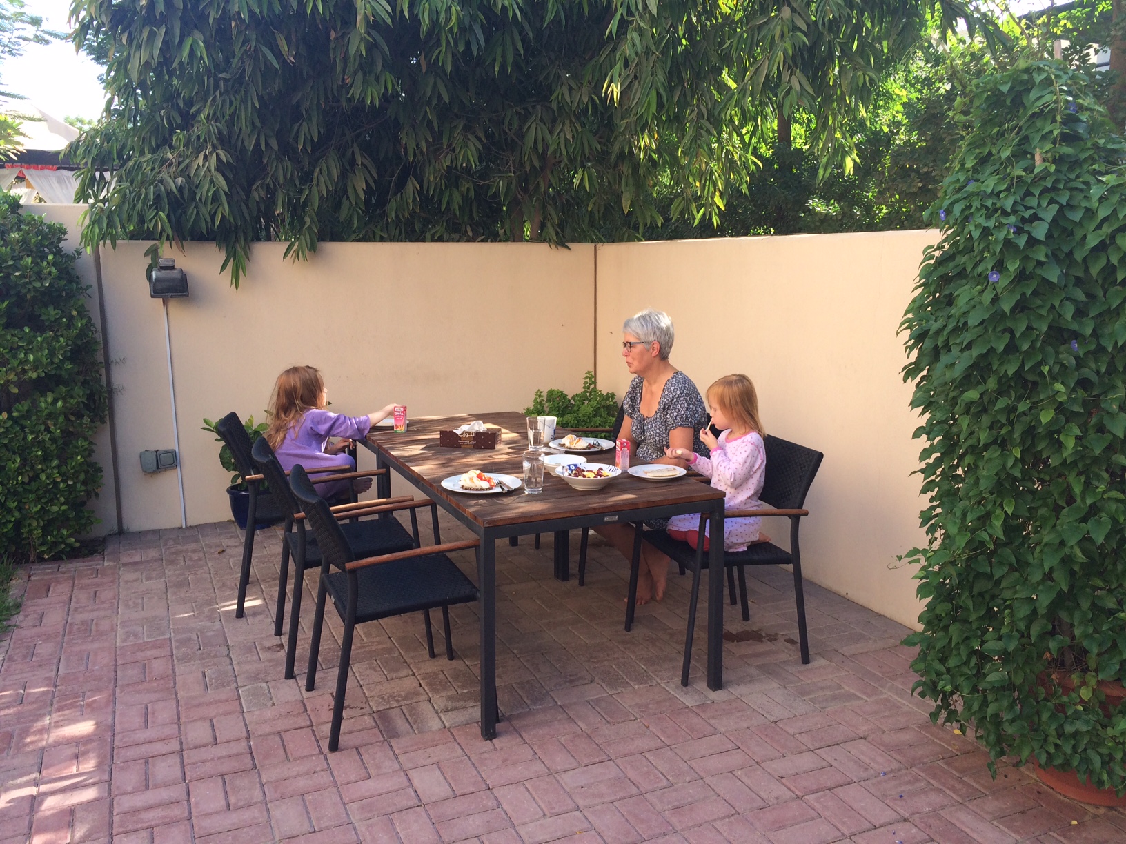 Og morgenmad i haven. Og hyggelige kaffepauser dagen igennem.IMG_0551Der er nyt brætspil.IMG_0548Og ture til legepladser.IMG_0599IMG_0600Vi nyder udelivet, nu hvor temperaturen og fugtigheden er sænket betydeligt.