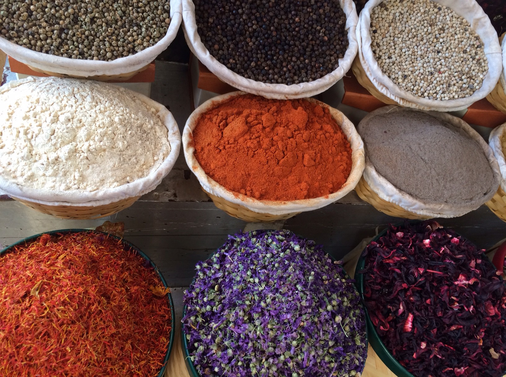 Jeg er mest interesseret i at fotografere krydderisække. De er simpelthen så sirligt opstillede og der dufter så dejligt af menthol-røgelse fra det lille kar.