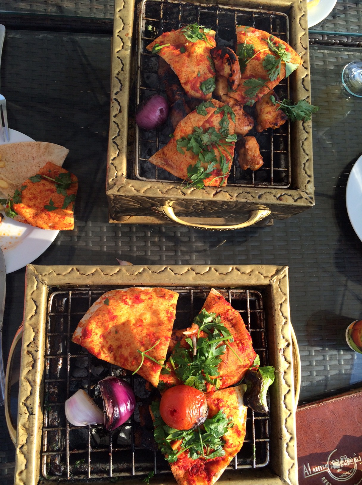 I røgen fra trækul, der ligger klar til at grille krydrede kebabspyd.