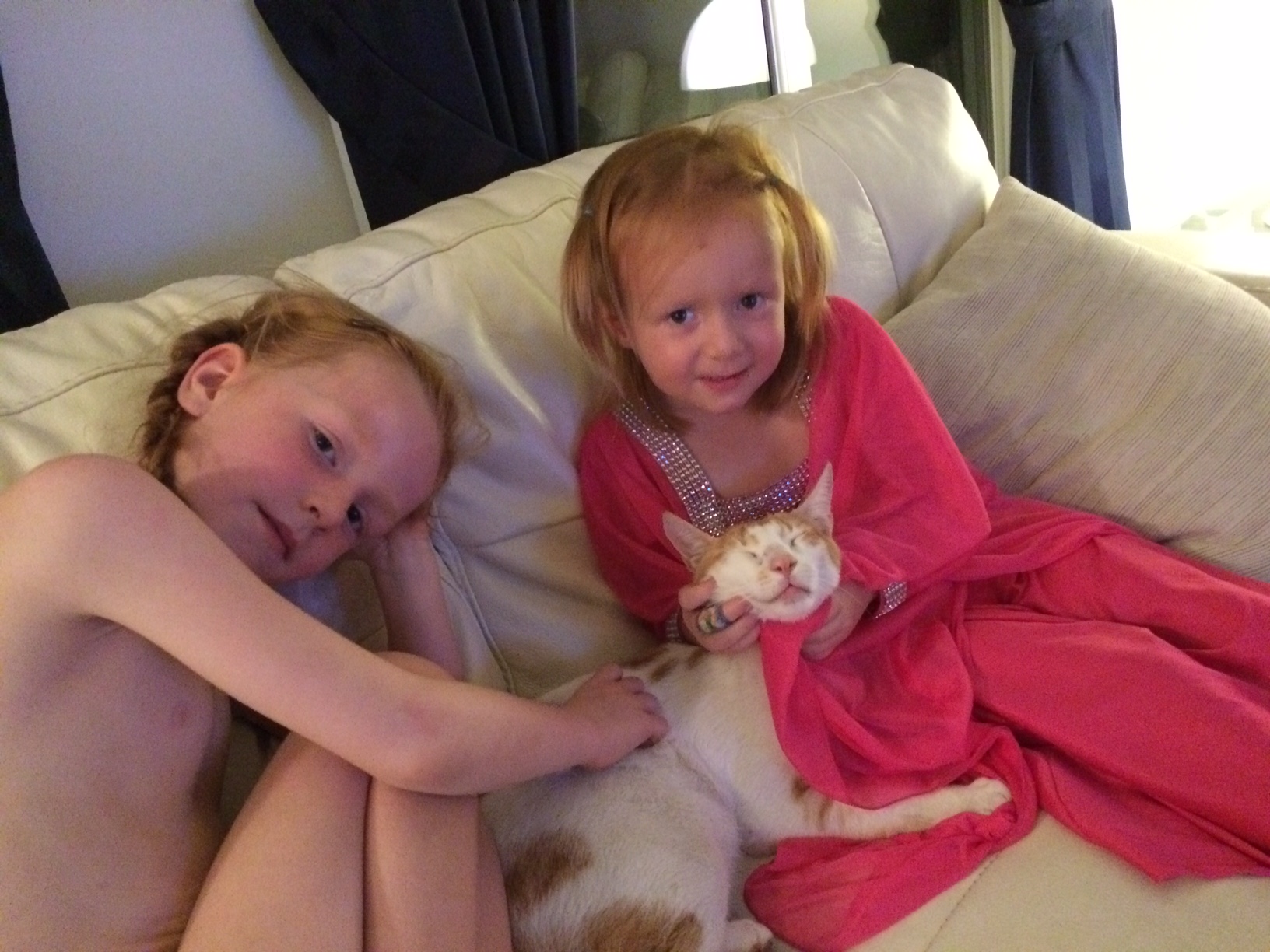 Pigerne optræder med stur-stur mavedanser-show i trampolinen. De er begge svært tilfredse med deres nye dragter.