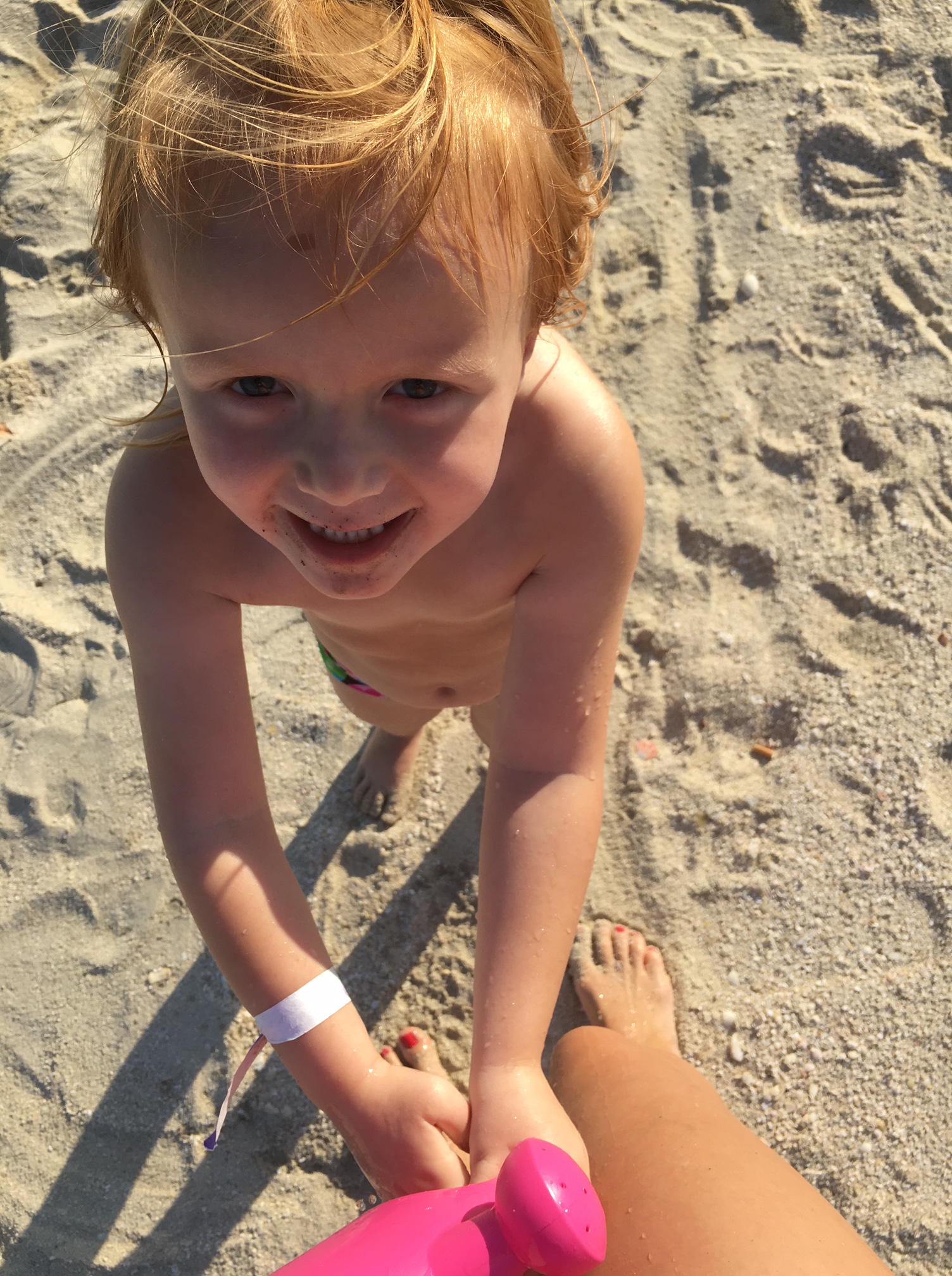 Grædende barn skylles under bruser.